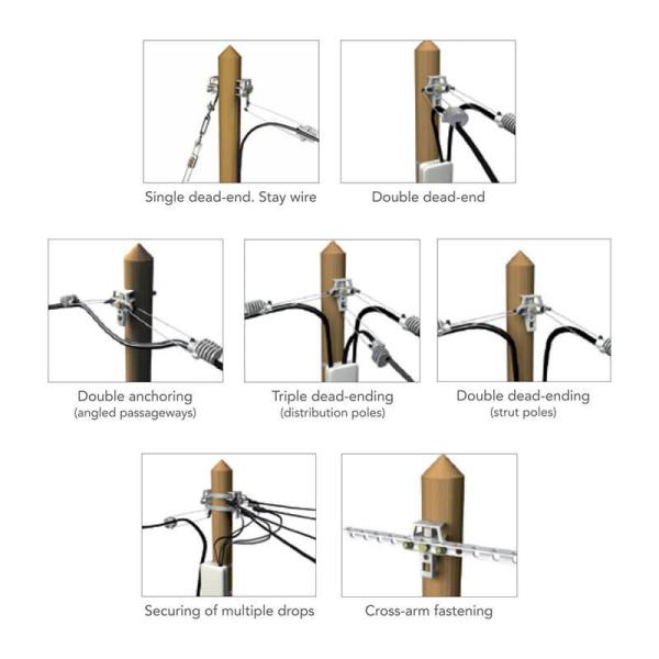 Pole bracket UPB designed for tension and suspension the ADSSfiber optic cable clamps or Figure eight fiber optic cable clamps, in fiber opc cable deployment of outdoor telecommunica on networks.